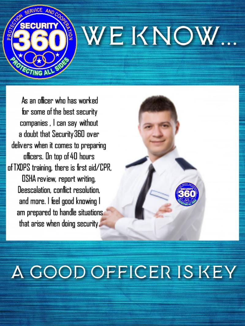 Security 360 is always looking for quality individuals who are or can become great assets to our team. If you are a person whom is diligent in doing things well. A person of high integrity. Observant and aware of your surroundings. Able to communicate effectively. With an ability to lead and follow when necessary, we would welcome your placement within our organization.